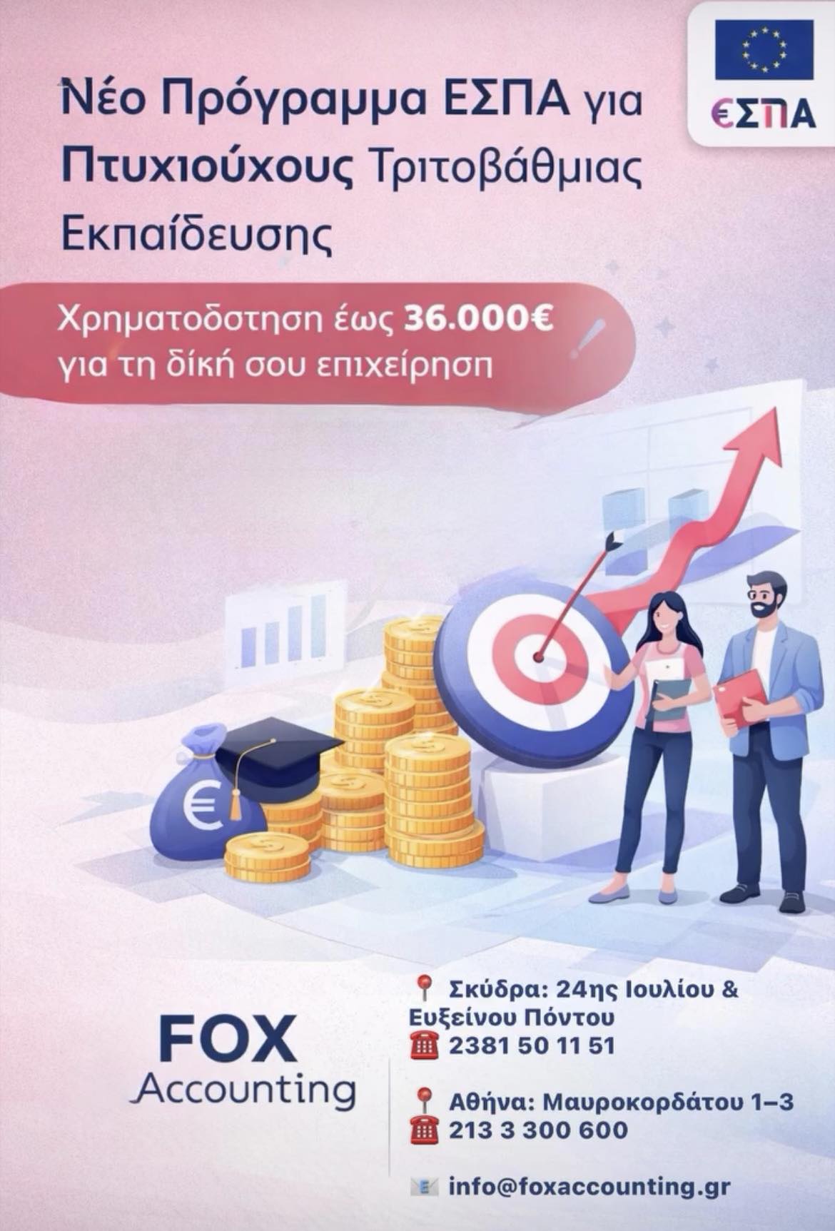 Ανακοινώθηκε νέο πρόγραμμα ΕΣΠΑ που αφορά πτυχιούχους τριτοβάθμιας εκπαίδευσης και στηρίζει έμπρακτα το πρώτο – ή επόμενο – επαγγελματικό τους βήμα.